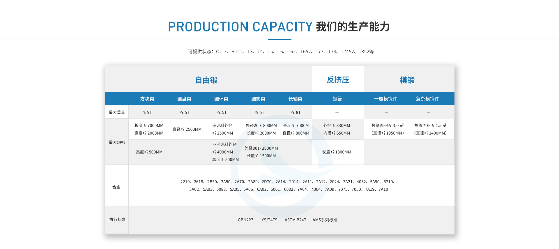 全鋁航材-高精級(jí)工業(yè)鋁材服務(wù)商。專業(yè)生產(chǎn)制造航天航空軍用合金鋁材、大型鋁模鍛件、自由鋁鍛件、反擠壓鍛管、超厚鍛造鋁板、大型鋁鍛環(huán),異形材航空模鍛造件、特殊成份超高強(qiáng)度新材料。可供應(yīng)材質(zhì),1系-7系鋁合金、防銹鋁、超硬鋁。